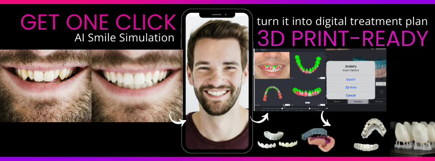 SmileFAI analyzes facial proportions and characteristics, then creates simulations based on established digital smile design principles, facial flow, and smile analysis rules. One click. Instantly realistic, esthetic smile simulations - DONE FOR YOU!